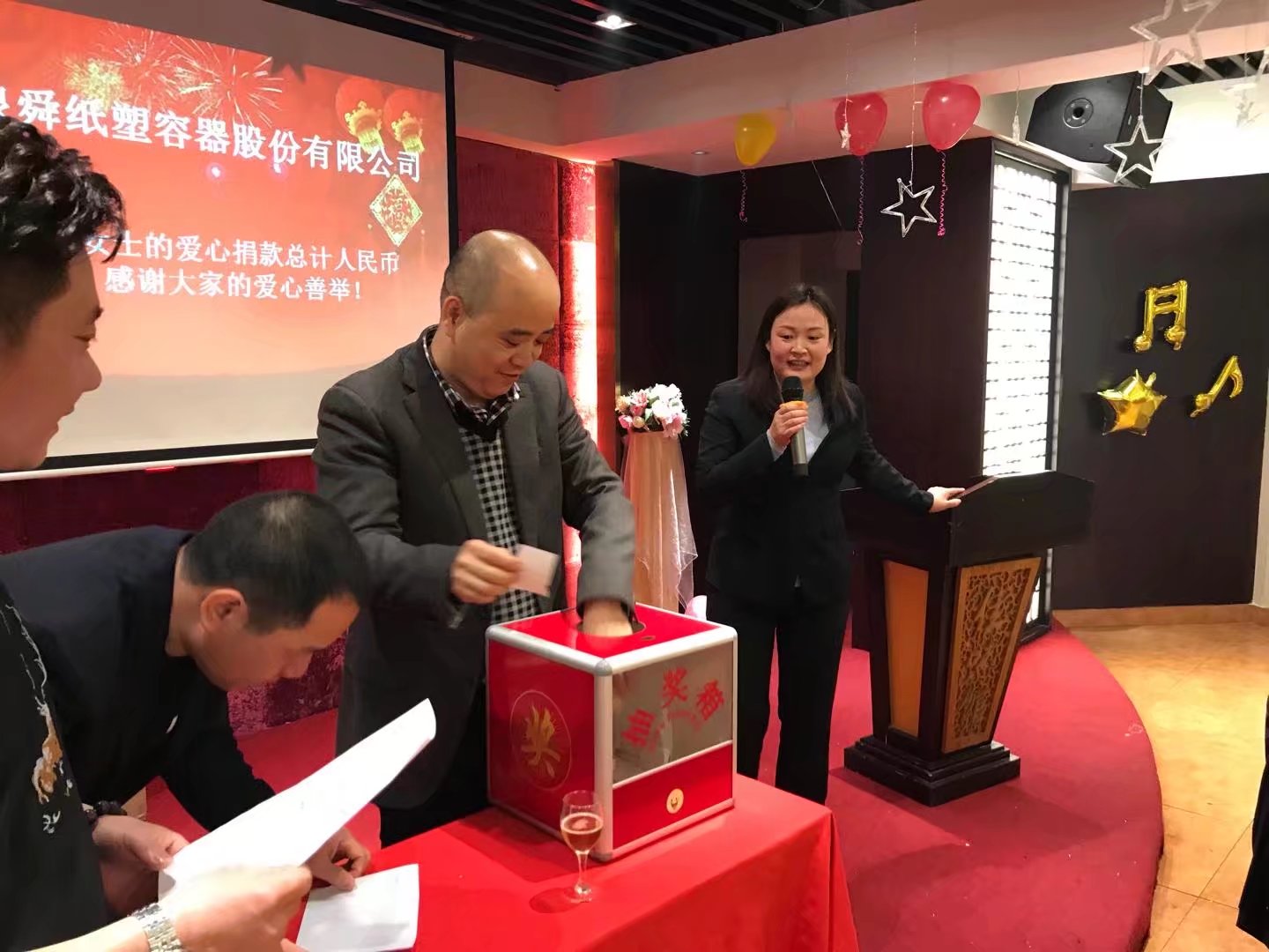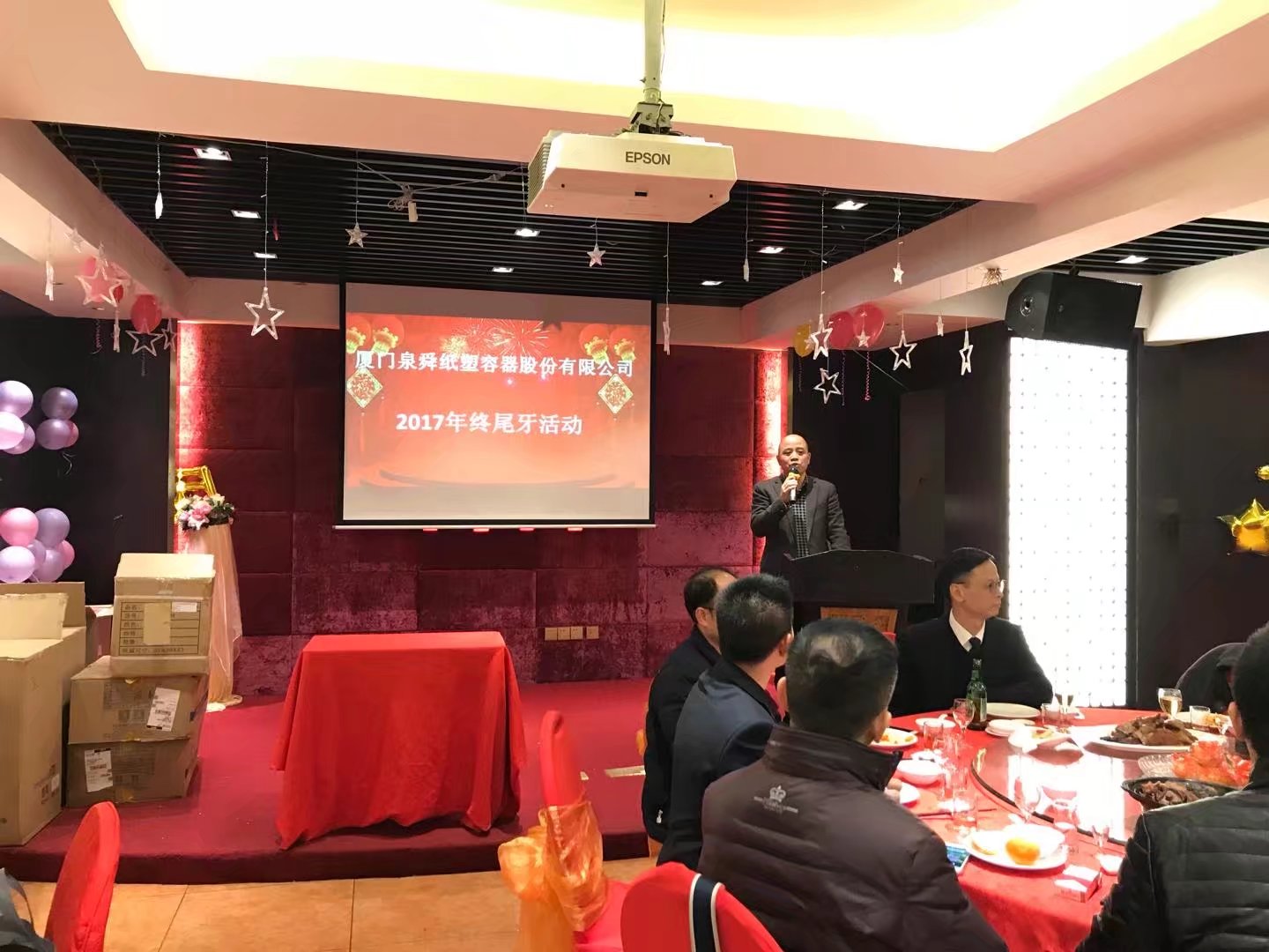 金鸡辞旧岁、玉犬报春来!在新春佳节即将到来之际,为感谢公司全体同仁一年来的辛勤工作,总结过往,展望未来,2018年2月5日晚,纸塑容器公司举办了全体员工年终尾牙宴活动。集团副总裁,公司董事林海洋先生,公司董事陈占锋先生及公司的部份供应商出席了此次活动。
