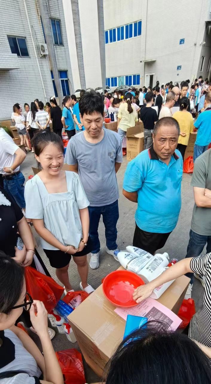 活动当天,全厂同仁同聚在公司办公大楼前,每10人一组围城一圈。现场骰子声、欢呼声、尖叫声此起彼伏,不论会不会玩,不管是否熟悉博饼及其规则,大家都在掷着骰子,听着那清脆悦耳的声音相互交流,心情也变得愉悦起来。随着状元的相继产生,活动高潮迭起,大家的脸上洋溢着快乐的微笑,博饼结束后,每个人都拎着大一袋小一袋的礼品,喜上眉梢。