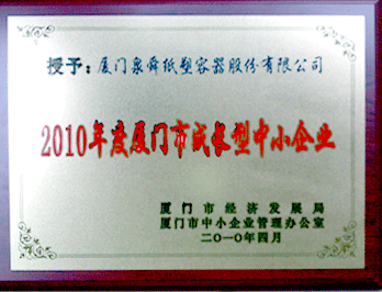4月18日,由福建省厦门市经济发展局主办的“2010年度厦门市成长型中小企业”颁奖典礼在厦门市国际会展中心举行。厦门泉舜纸塑容器股份有限公司从厦门市七万家中小企业中脱颖而出,荣膺“2010年度厦门市成长型中小企业”。